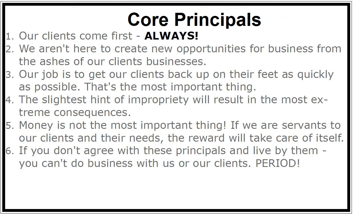 Everyone at Survival Critical Services is trained ,drilled and indoctrinated in these very important principals. We live by them everyday. We demand that any company that does business with us or our clients, live by them as well.